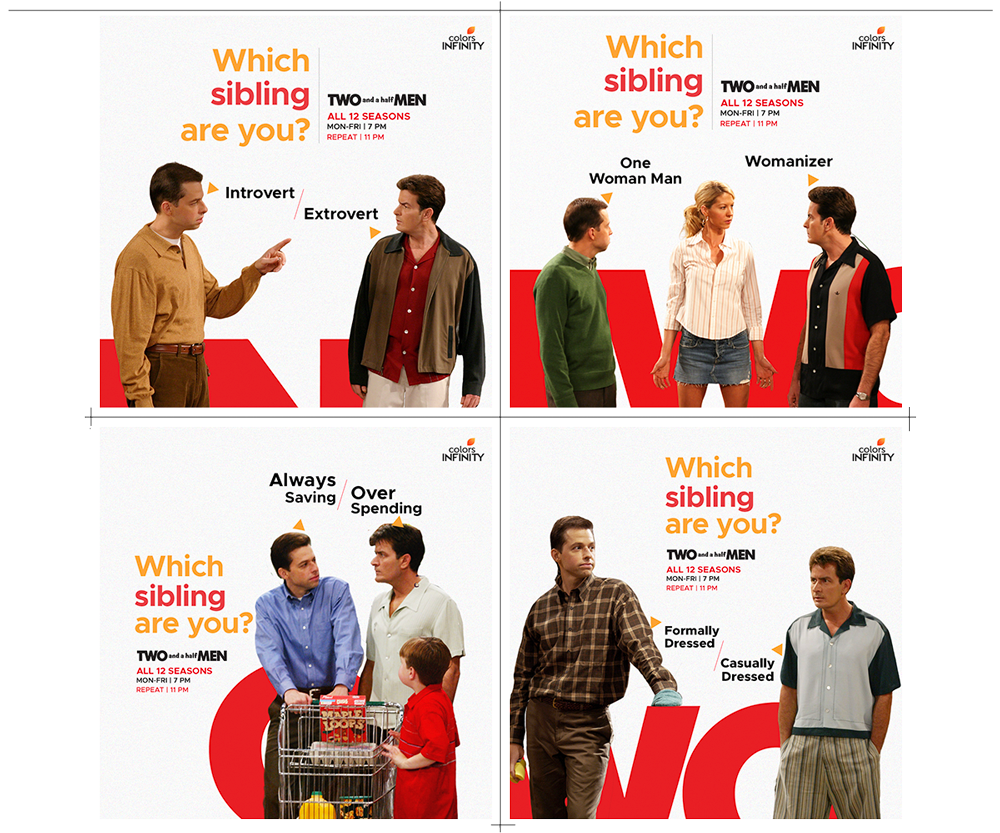 The project involved designing the social media launch campaign for Two and a Half Men on Comedy Central India. The scope included Instagram stories, grid layouts, and feed posts. The objective was to create a cohesive and engaging visual identity that captured the show's quirky, humorous tone while staying consistent with Comedy Central’s brand aesthetics. The focus was on bold, recognizable imagery and punchy messaging that connected instantly with both new viewers and long-time fans, ensuring a smooth and impactful launch across platforms.